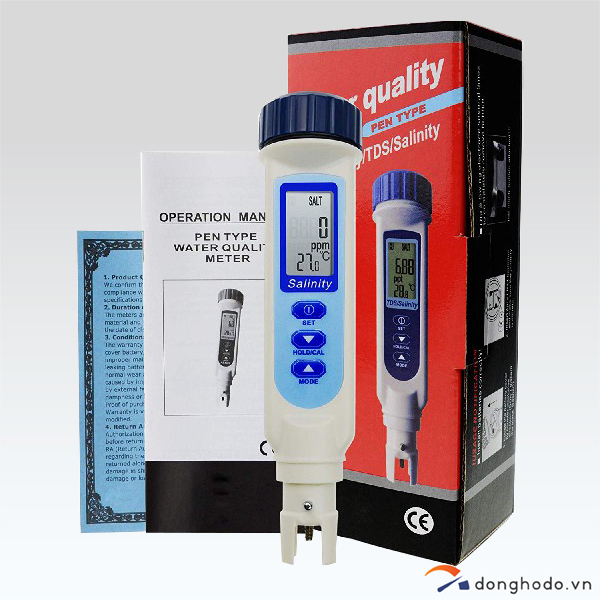 - Dải đo rộng 0 ~ 9999 ppm hoặc 1.0 ~ 100.0 ppt, độ phân giải chỉ 1 ppm hoặc 0.01 ppt